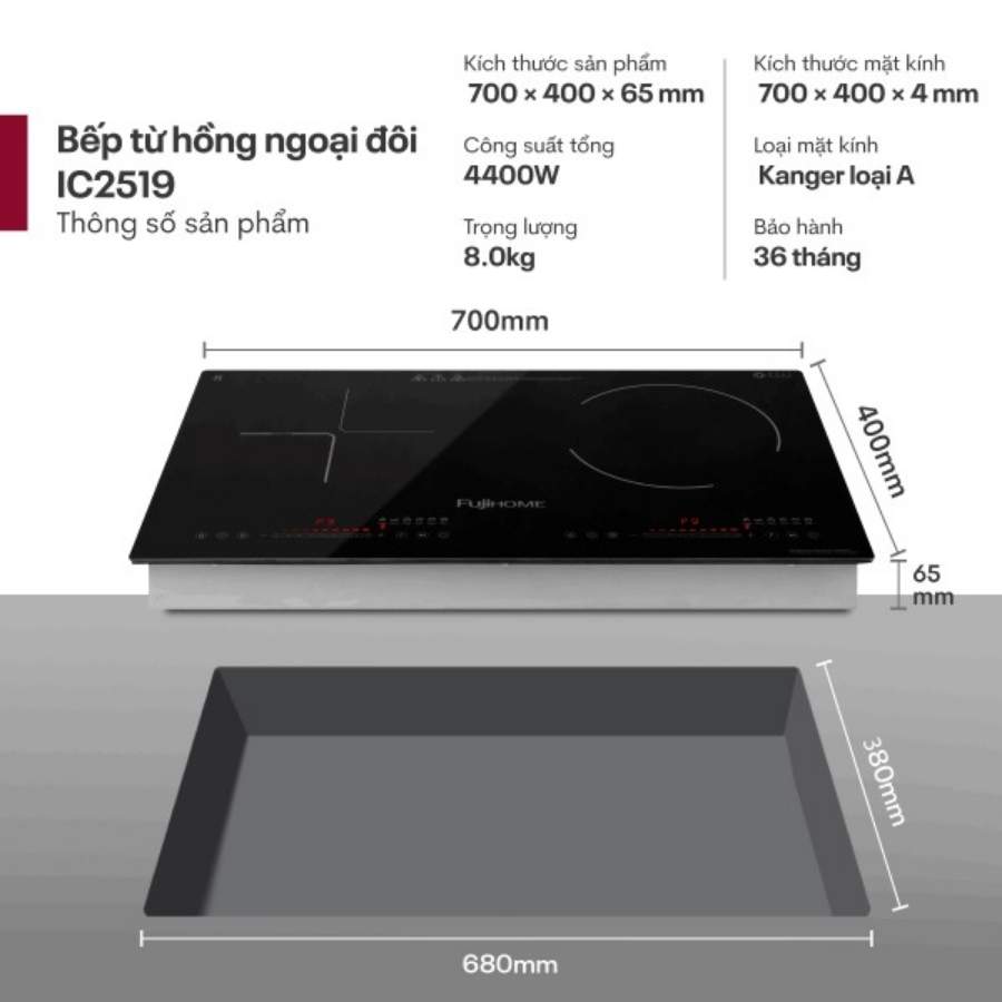 Thông số kỹ thuật bếp từ đôi và hồng ngoại Fujihome IC2519