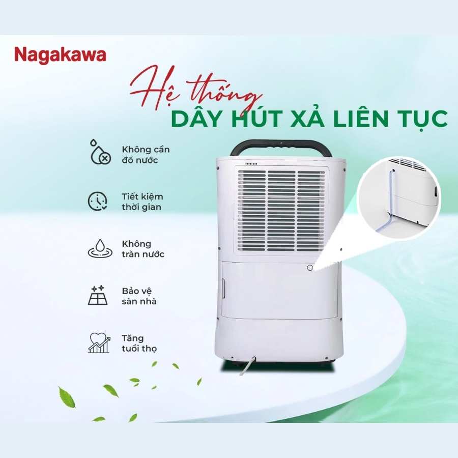 - Bạn đã bao giờ cảm thấy bất tiện khi phải thường xuyên đổ nước từ bình chứa của máy hút ẩm? Nagakawa NAD8559 sẽ giải quyết hoàn toàn vấn đề này! Máy được tích hợp hệ thống dây hút xả liên tục, cho phép máy hoạt động liên tục mà không cần dừng lại đổ nước.