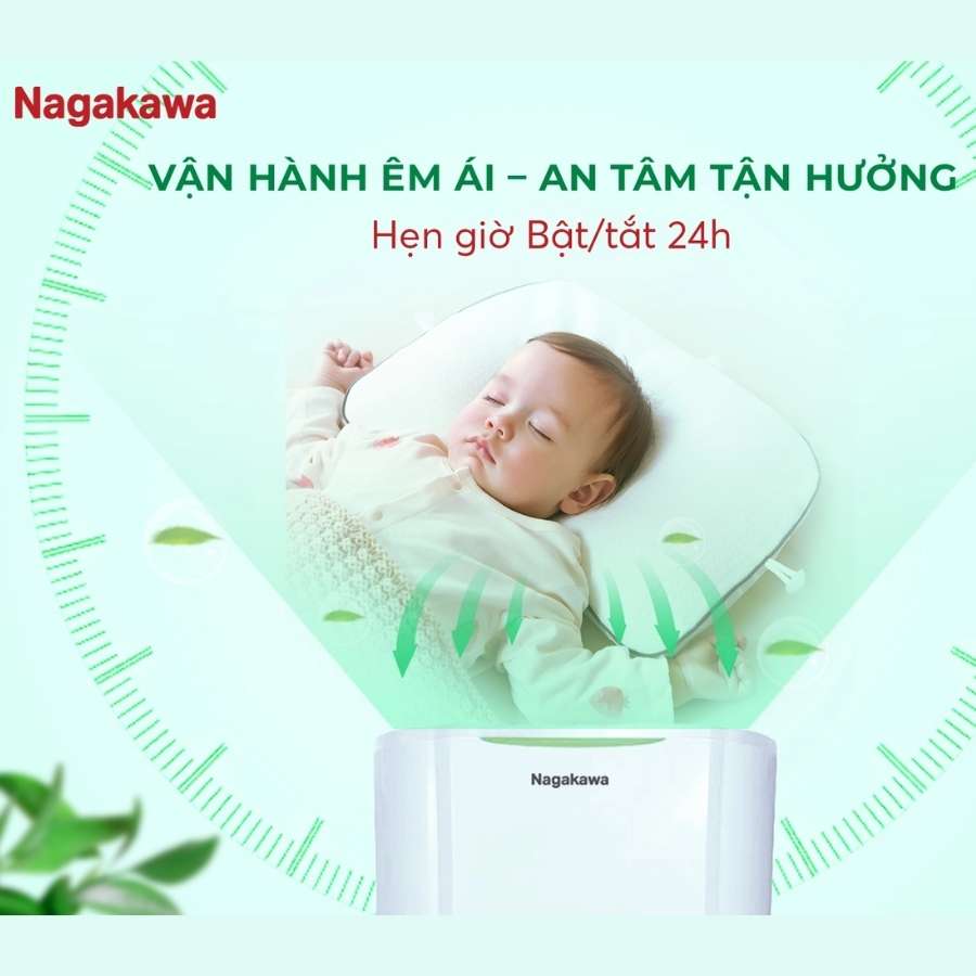 - Bạn có thể hẹn giờ bật/tắt máy hút ẩm Nagakawa NAD8569 lên đến 24 tiếng, chủ động kiểm soát thời gian hoạt động của máy, tiết kiệm điện năng và phù hợp với nhu cầu sử dụng.
