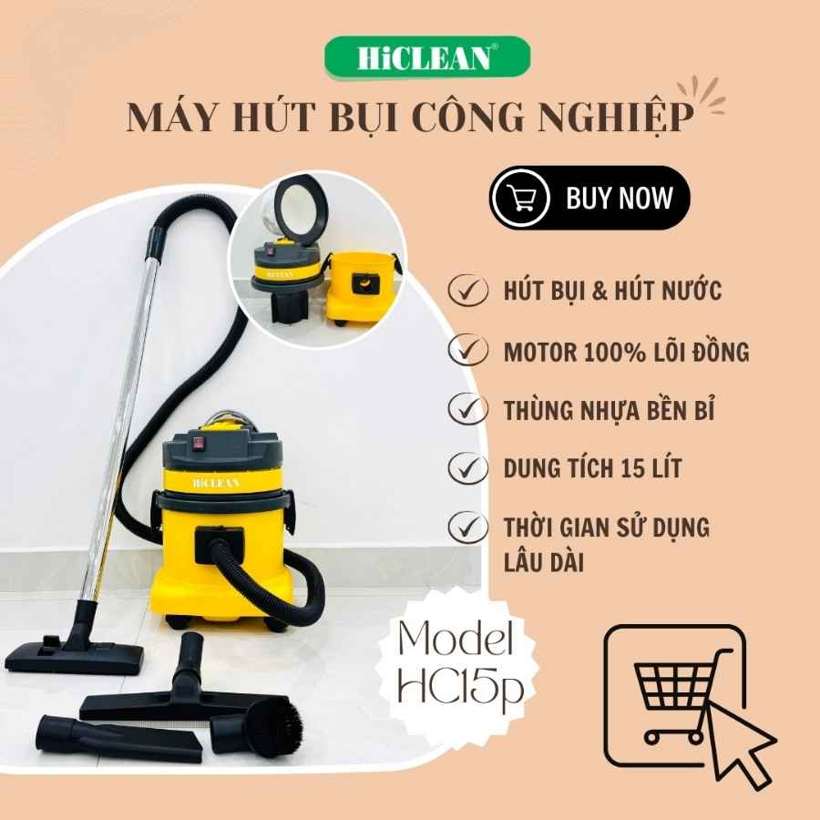 Máy hút bụi HiClean HC15P công suất 1500W, thùng chứa 15L, không chỉ giúp bạn làm sạch bụi bẩn một cách nhanh chóng, hiệu quả mà còn giúp cho không gian sống của bạn trở nên sạch sẽ, thông thoáng hơn.