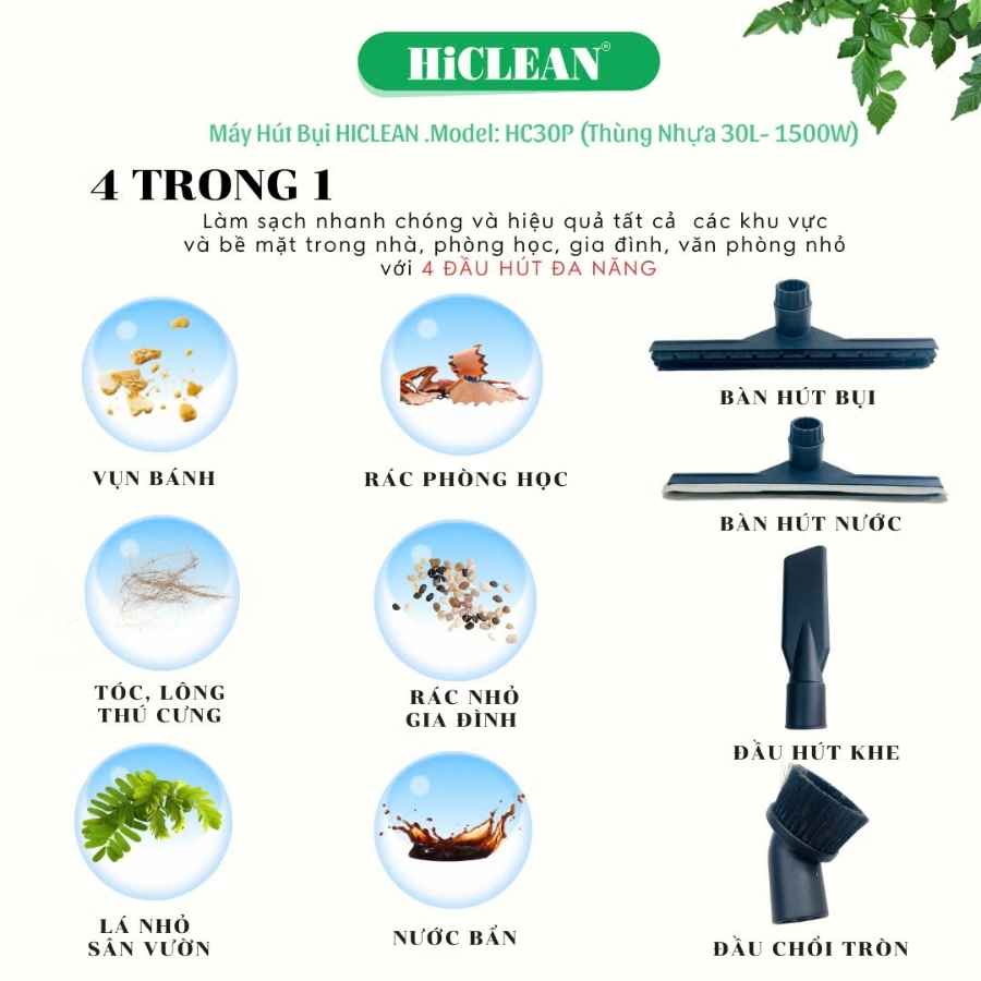 - Với tất cả các tính năng vượt trội của mình, máy hút bụi HiClean HC30P là một trong những lựa chọn tốt nhất cho việc vệ sinh các bề mặt công nghiệp và thương mại. Nó không chỉ là một thiết bị hút bụi khô thông thường, mà còn có thể hút nước và các bụi bẩn công nghiệp.
