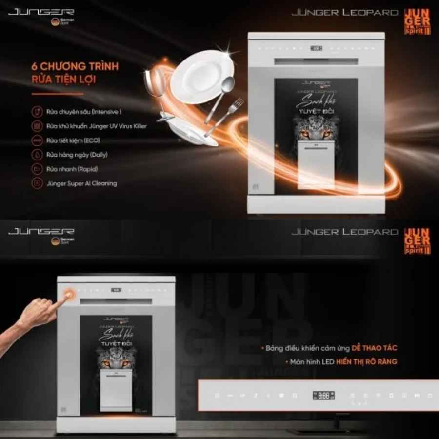 Máy rửa bát Junger JG Leopard DWJ-140 là lựa chọn hoàn hảo cho gia đình hiện đại với: