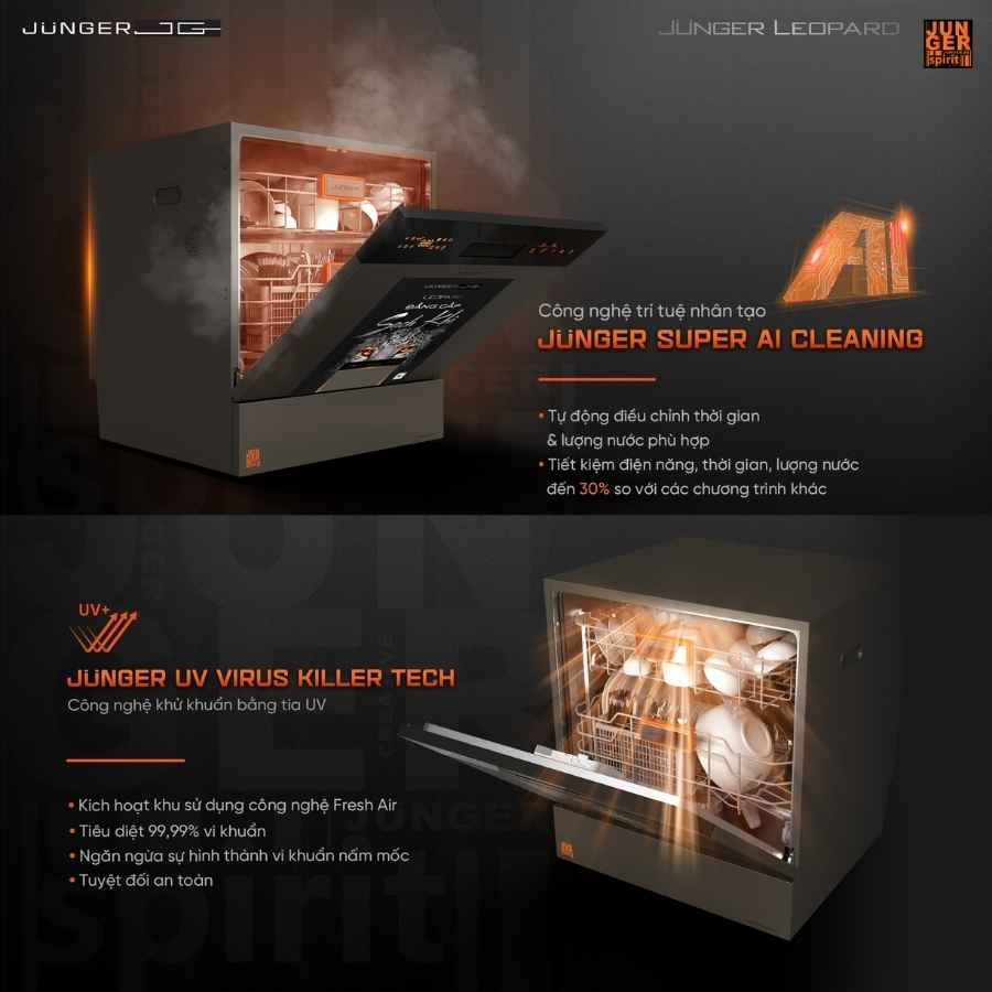 - Tiệt trùng bằng tia UV – Junger UV Virus Killer Tech, Công nghệ rửa khử khuẩn 75°C