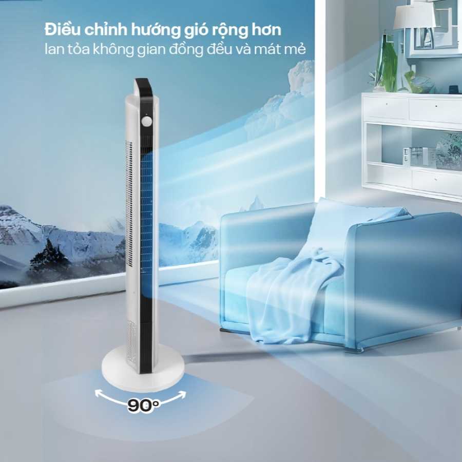 - Một trong những điểm nổi bật của Fujihome TF-12HM là khả năng quay đảo chiều lên đến 90 độ, giúp luồng gió phân bổ đều khắp không gian. Điều này đặc biệt hữu ích khi sử dụng trong phòng đông người hoặc diện tích lớn.
