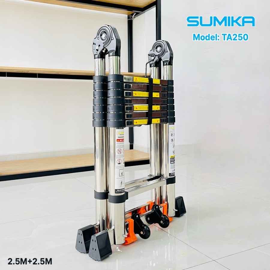 Thang Inox rút chữ A SUMIKA TA250, chiều cao 2.5m+2.5m