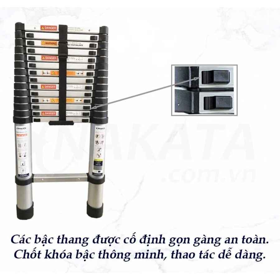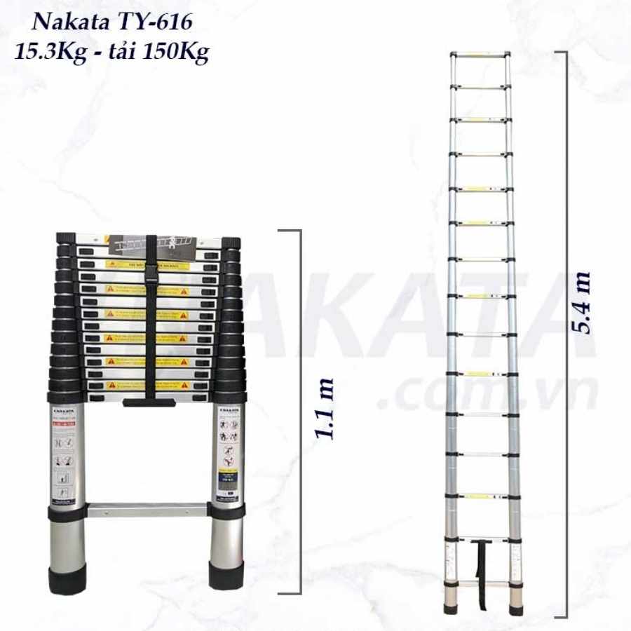 - Thang nhôm rút gọn đơn Nakata TY-616 5m4 là giải pháp lý tưởng cho các công việc cần thao tác trên cao như sửa chữa điện nước, lắp đặt thiết bị, vệ sinh nhà cửa hay công trình dân dụng. Sở hữu chiều cao tối đa 5,4m, thiết kế rút gọn linh hoạt, thang giúp người dùng dễ dàng sử dụng, di chuyển và cất giữ mà không chiếm nhiều diện tích.