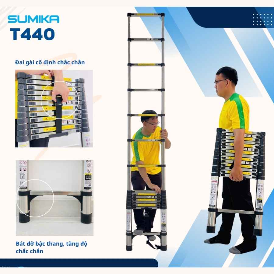 Thang rút inox SUMIKA T440, đai đen, chiều cao 4.4m