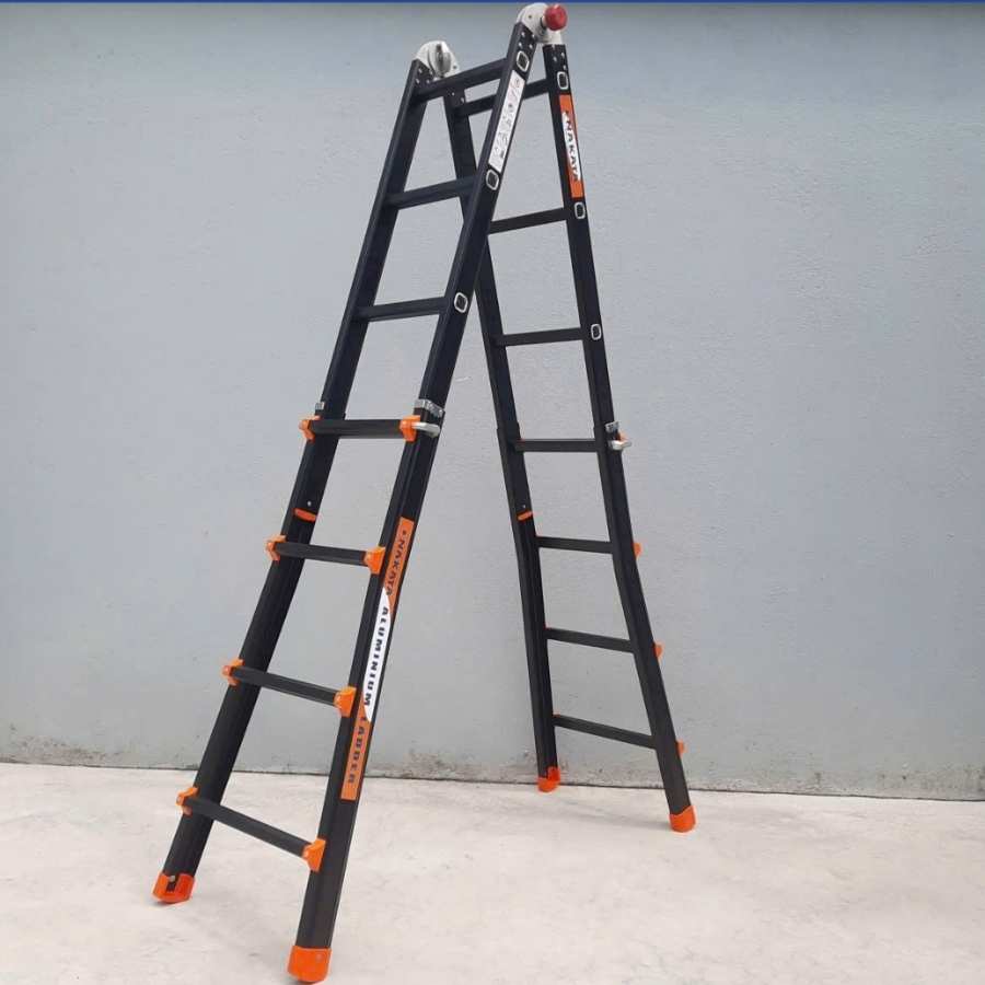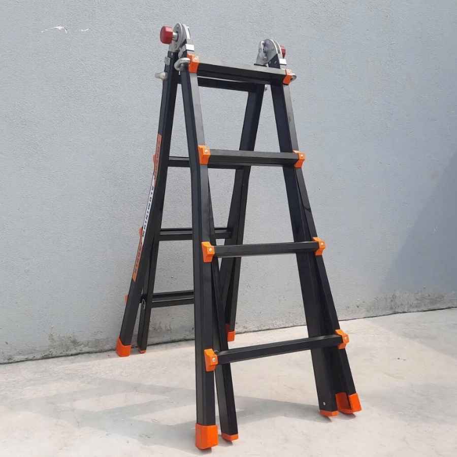 - Thang duỗi thẳng: Khi kéo thang dài ra, bạn có thể sử dụng ở những không gian rộng, làm việc trên các công trình xây dựng hoặc lắp đặt thiết bị ở độ cao lớn.