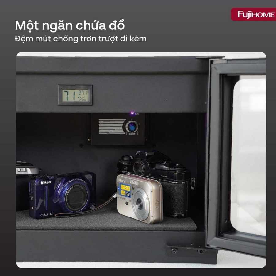 - Trong điều kiện khí hậu nóng ẩm tại Việt Nam, các thiết bị như máy ảnh, ống kính, đồ điện tử hay tài liệu rất dễ bị ẩm mốc, hư hỏng. Fujihome DC-25M là mẫu tủ chống ẩm điều khiển cơ thế hệ mới, được thiết kế chuyên biệt để kiểm soát độ ẩm ổn định, giúp bảo vệ tài sản giá trị một cách an toàn và lâu dài.