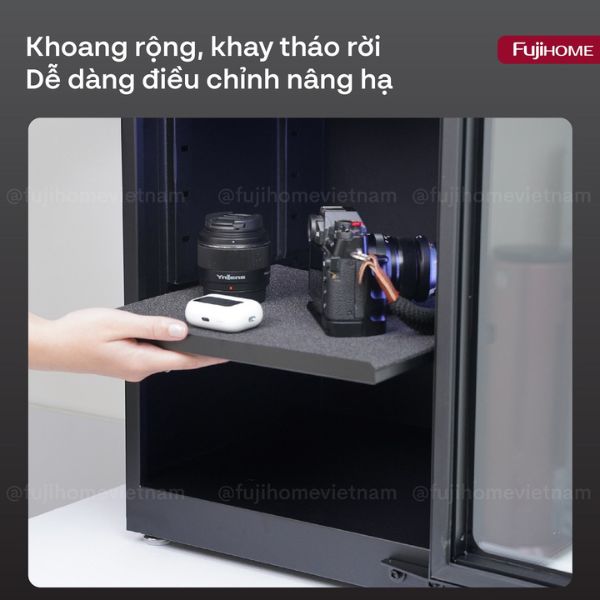- Tủ chống ẩm Fujihome DC-70E là thiết bị bảo quản chuyên dụng với dung tích 70 lít, tích hợp hệ thống điều khiển điện tử hiện đại giúp kiểm soát độ ẩm chính xác, bảo vệ máy ảnh, ống kính, thiết bị điện tử và nhiều vật dụng quan trọng khỏi nấm mốc, hư hỏng.
