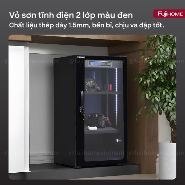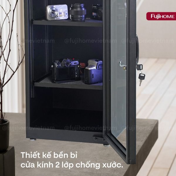 - Fujihome DC-70E có màn hình LCD hiển thị độ ẩm rõ ràng, cửa kính cường lực trong suốt giúp dễ dàng quan sát bên trong. Thân tủ làm từ kim loại sơn tĩnh điện bền bỉ, đảm bảo độ kín khít cao. Đặc biệt, Fujihome DC-50E được bảo hành chính hãng lên đến 36 tháng, mang lại sự an tâm tuyệt đối khi sử dụng